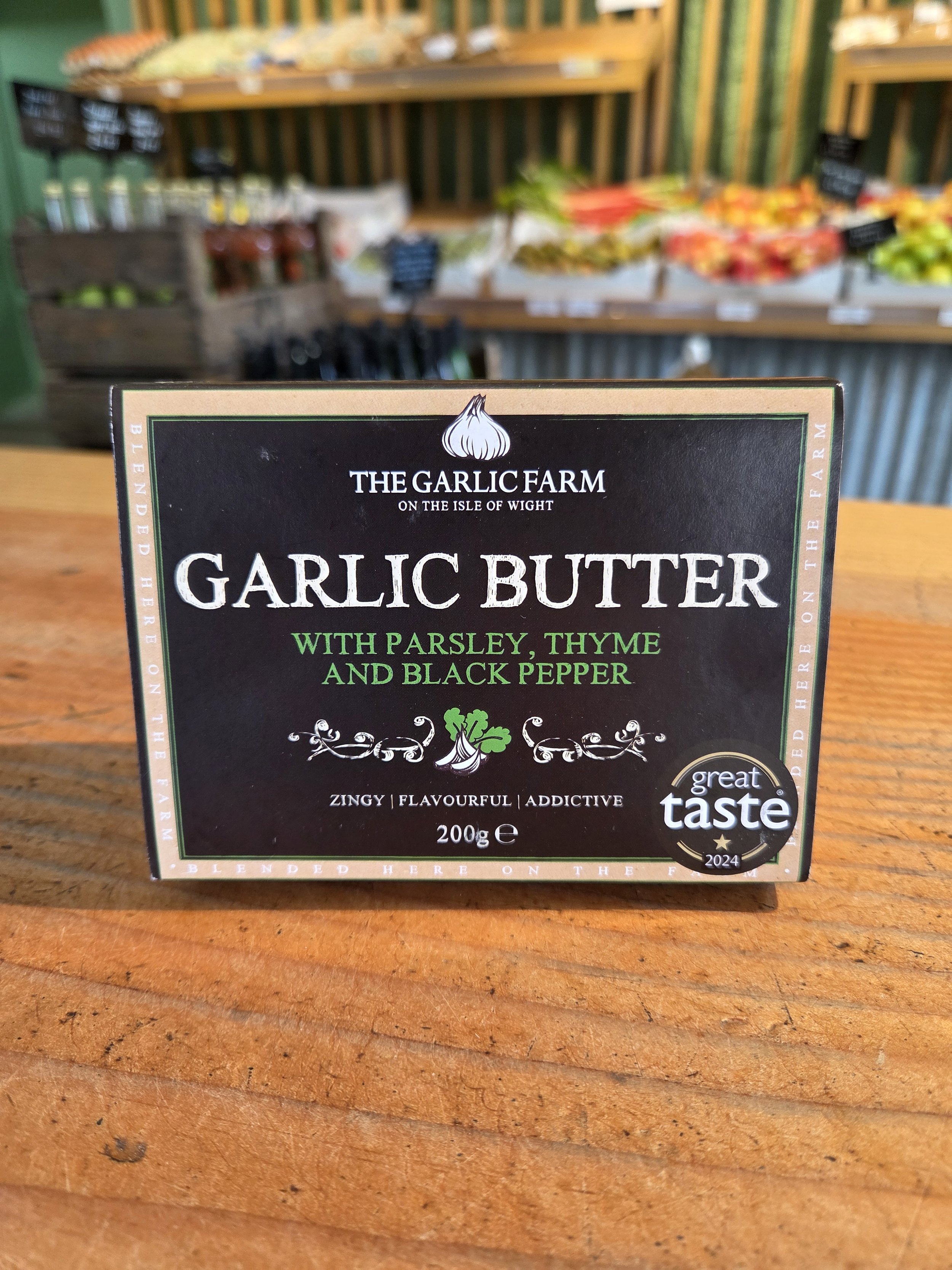 A mouth watering combination of smooth creamy butter, crushed garlic cloves, herbs and black pepper. Perfect for homemade garlic bread, or delicious melted over vegetables and meat.